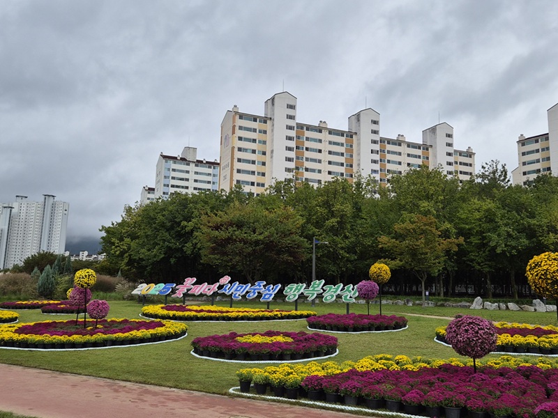 국화는 고유의 향기와 선명한 색감으로 가을의 정취를 한층 더 짙게 물들이며, 인근 산책로와 어우러져 시민들이 휴식과 여유를 즐길 수 있는 힐링 공간으로 자리 잡았다.